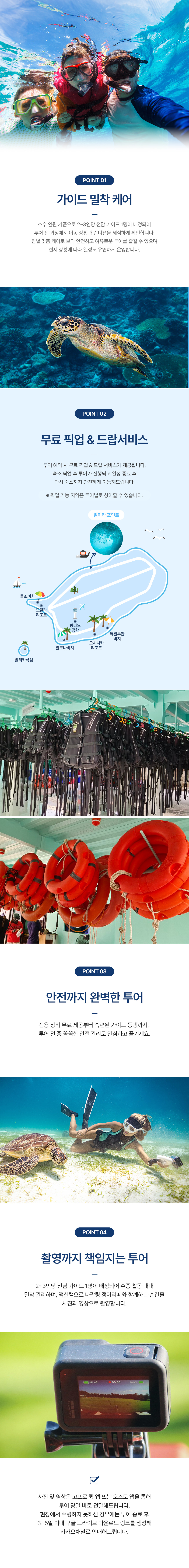 스노클링을 즐기는 투어입니다. 나팔링 포인트는 최근 다이버들에게