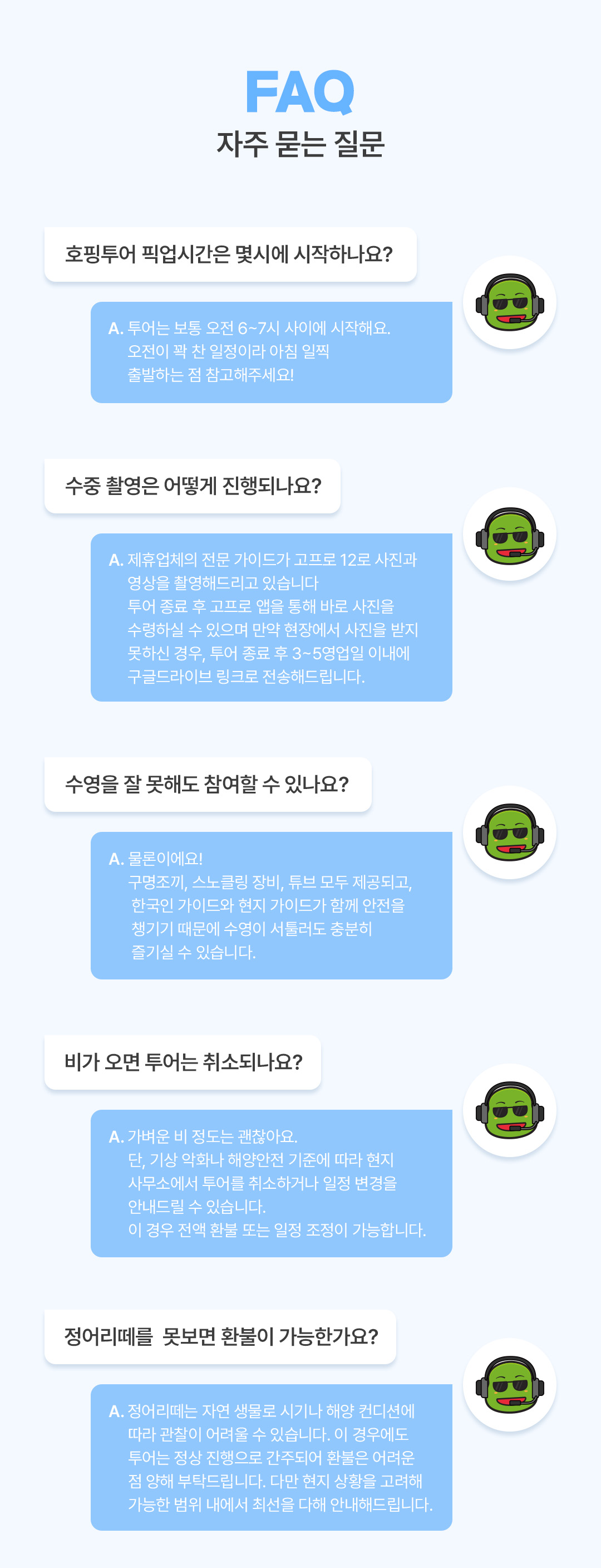 코발트 빛 바닷속 해양 생물들을 구경하는 투어입니다.