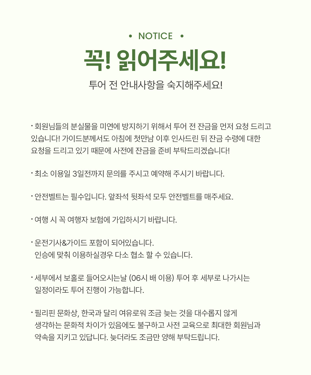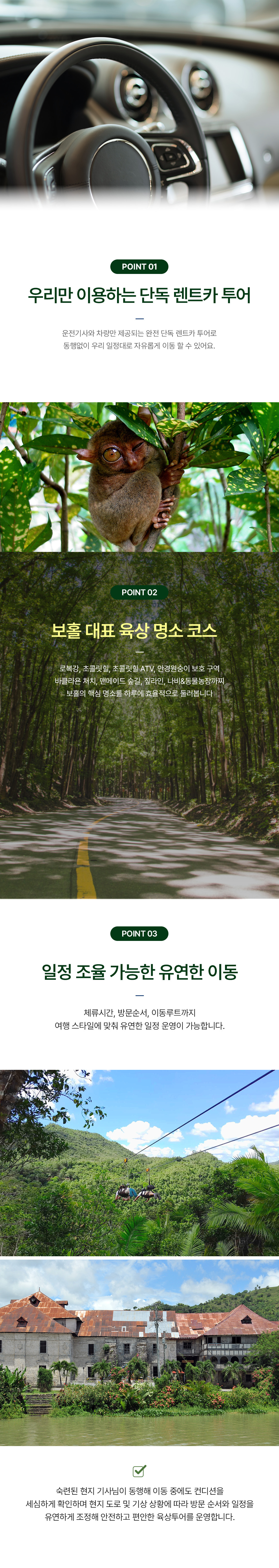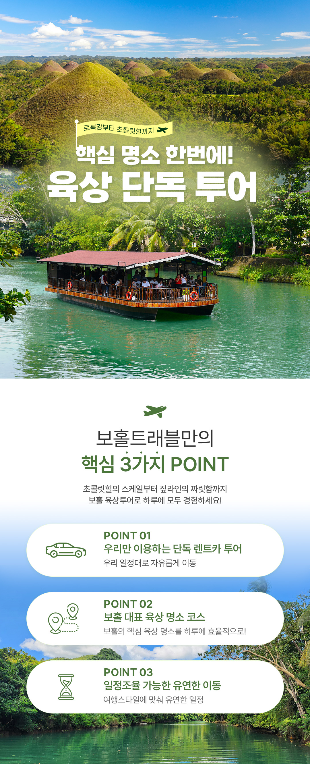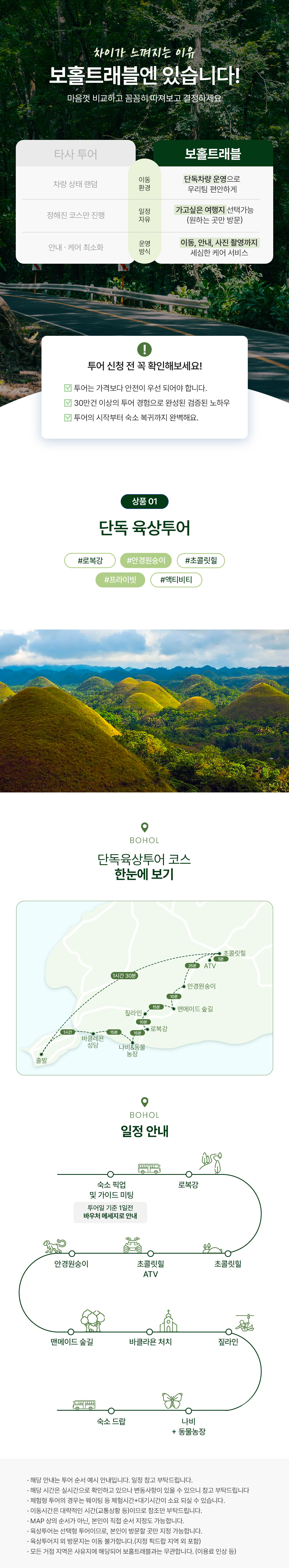 보홀의 이곳 저곳을 다니며, 아름다운 자연과 엑티비티를 느껴보세요!