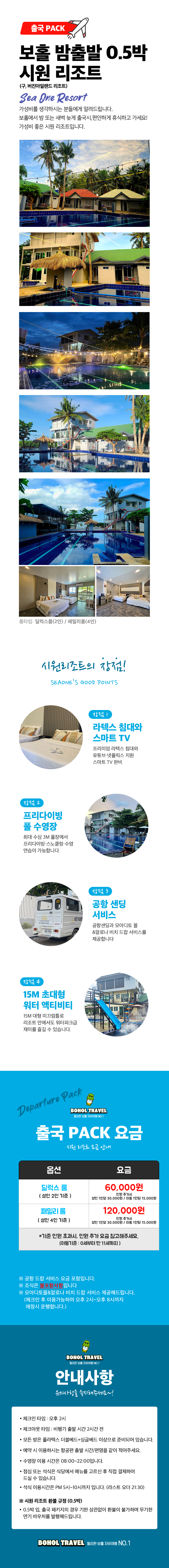 시원 리조트 출국팩(Sea One Resort) + 베이비시터,공항드랍,알로나드랍
