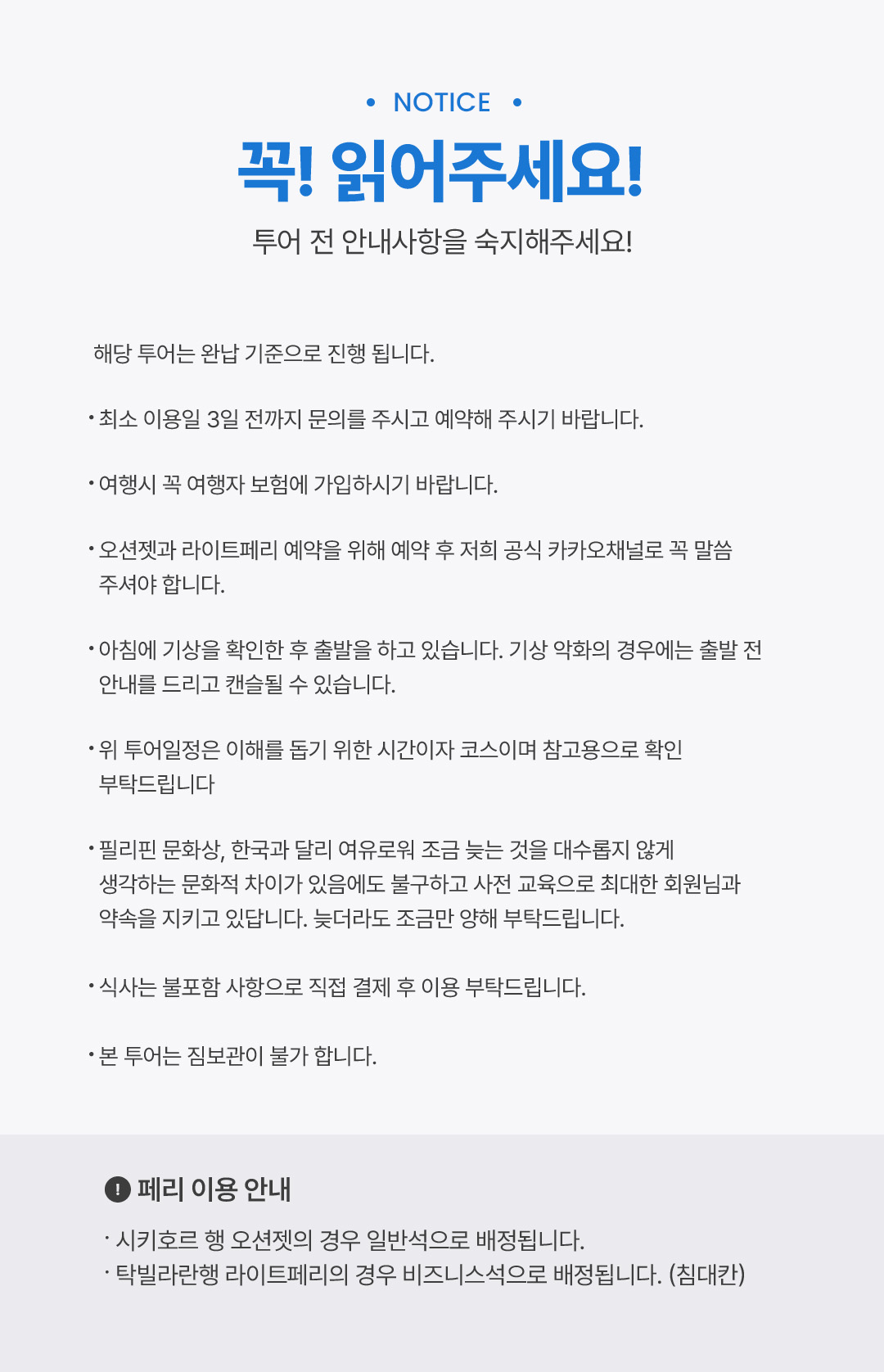☑️ 본 투어는 조인투어로 최소 6인 이상이 모여야 출발이 가능합니다.